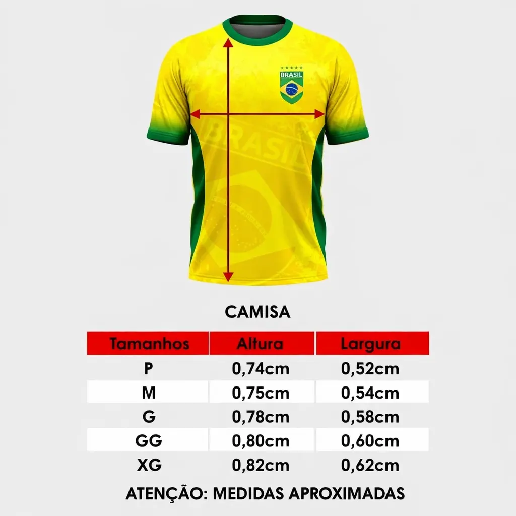 A Camisa do Brasil Amarela é a peça ideal para quem quer vestir o amor pela Seleção Brasileira com estilo, conforto e muita atitude. Confeccionada em tecido Dry Fit Premium, com estampa digital de alta qualidade, ela é perfeita para jogos, eventos esportivos, encontros entre amigos e para usar no dia a dia com orgulho de ser brasileiro.