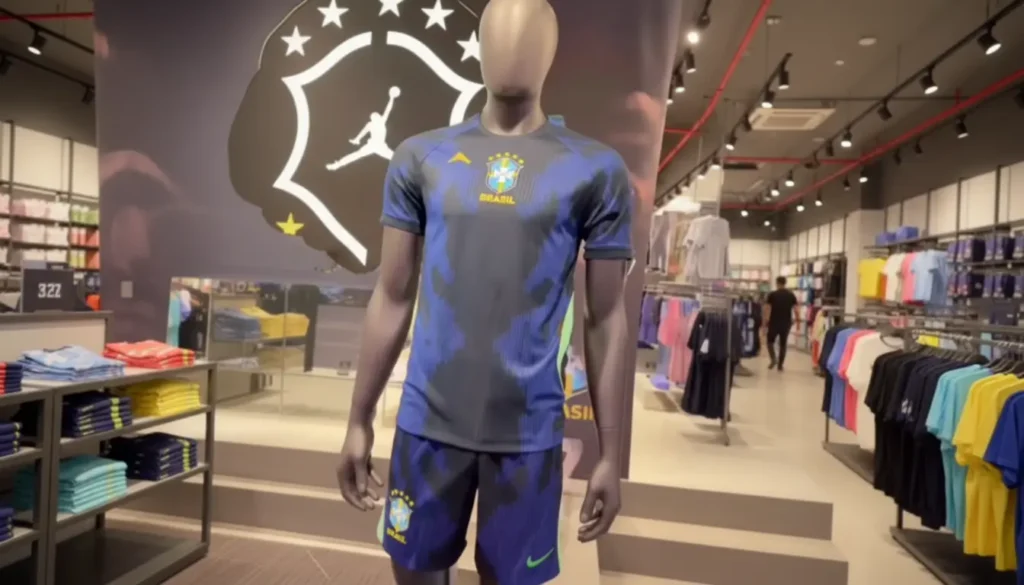 Ele selecionou a silhueta escura presente na nova camisa reserva da Seleção Brasileira — aquela figura abstrata estampada no uniforme azul-escuro lançado em 12 de março de 2026 — recortou a imagem e a enviou diretamente para uma inteligência artificial, com uma pergunta simples e direta: