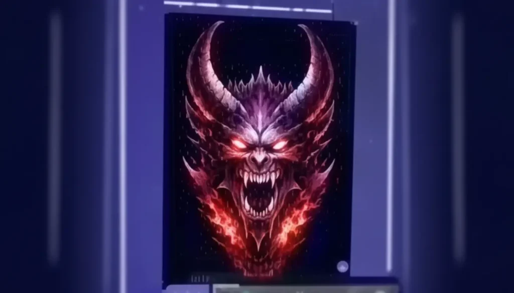 Sem qualquer contexto sobre futebol, sem saber que se tratava de uma camisa da Seleção Brasileira e sem nenhuma indução por parte do usuário, o algoritmo identificou na silhueta características visuais associadas a figuras demoníacas ou entidades das trevas — descrevendo elementos como chifres, contornos de rosto e proporções corporais que correspondem a representações clássicas desse tipo de figura na iconografia ocidental.